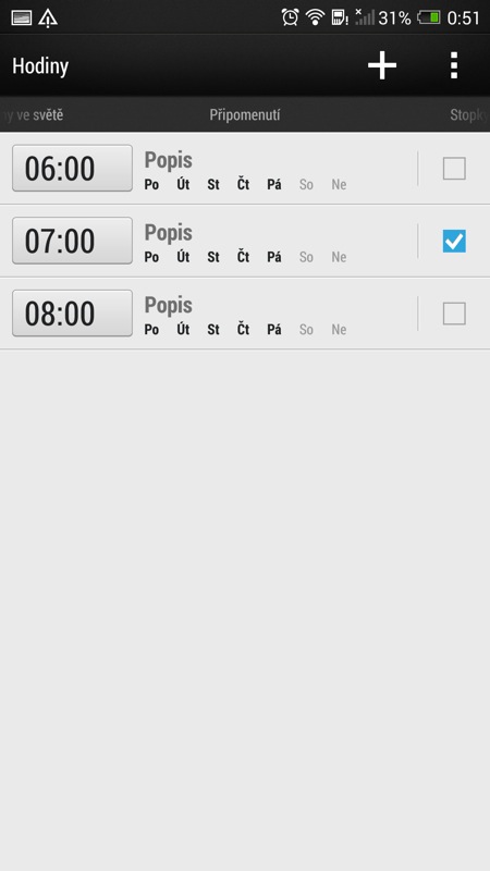 To vše samozřejmě doplňuje budík, stopky a minutka, podle nejlepších zvyklostí HTC zabalené do graficky zgruntu předělané aplikace.