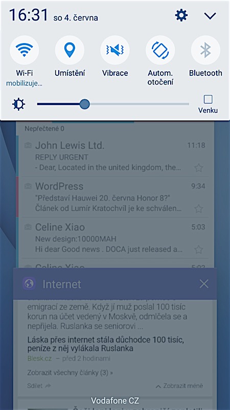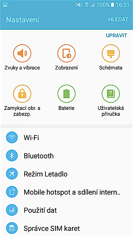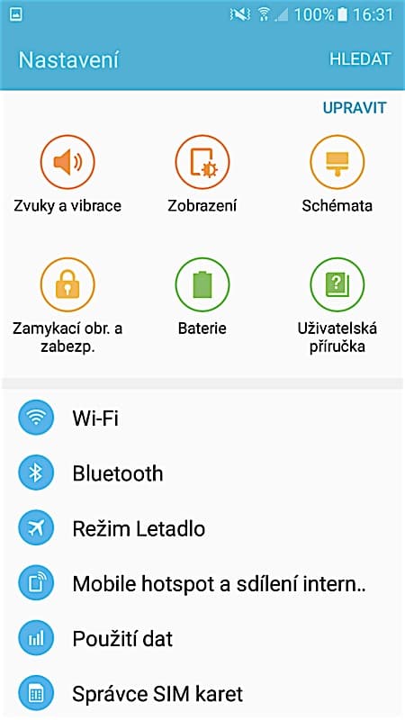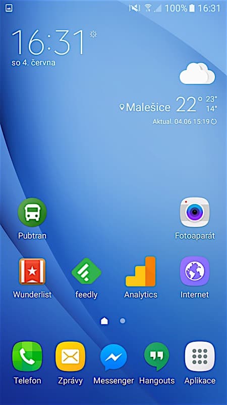Nejnovější prostředí TouchWiz je postavené na Androidu 6.0 Marshmallow a tak trochu „nesmyslně“ využívá v defaultním nastavení světlých barev (Super AMOLED displeje mají dokonalé zobrazení naopak černé barvy). Pokud to ale někomu bude vadit, není problém zamířit do nastavení a vybrat si jiný motiv, klidně tmavší, leč budete k tomu muset zamířit do obchodu s motivy a tím pádem si ještě založit Samsung účet.