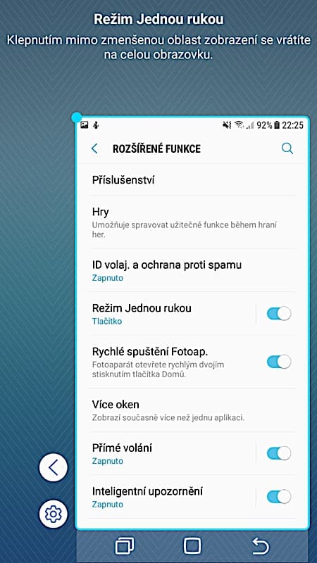 Krásným příkladem je bleskurychlé spuštění fotoaparátu, kdy stačí dvakrát stisknout domovskou klávesu pod displejem. A stejně jako u jiných telefonů Samsungu je k dispozici také tzv. přímé volání, tedy možnost pouhým přiblížením telefonu k uchu zavolat kontakt, dále možnost otočením přístroje ztlumit zvuky (např. vyzvánění, budík, či časovač), nebo zvednutím ze stolu se nechat upozornit vibracemi na nové zmeškané události. A pár dalších takových funkcí.