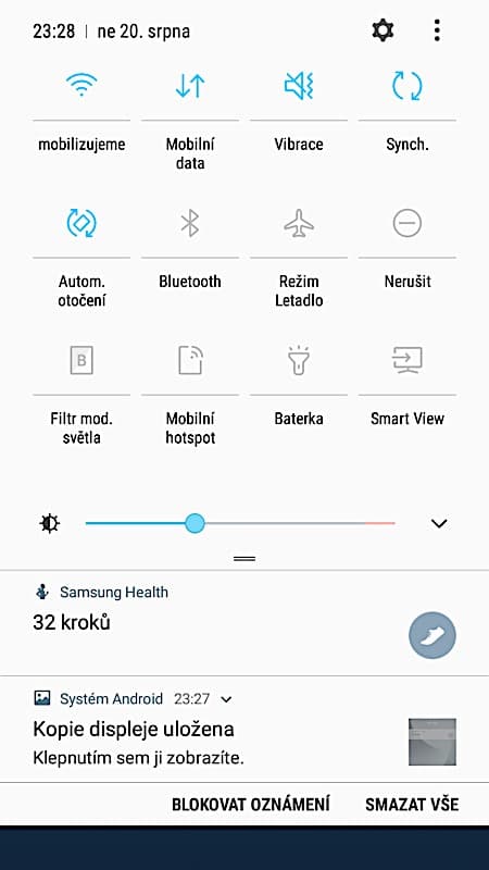 Pokud jde o další disciplíny, Samsung se nemá za co stydět – např. čitelnost na přímém slunci je velmi dobrá, stejně tak můžu pochválit práci čidla pro automatickou regulaci jasu, nebo vysoký rozsah nastavení úrovně podsvícení displeje, aby např. v noci nedocházelo k nepříjemnému vypalování oční sítnice. A k tomu má být nápomocný i moderní režim s filtrem modrého světla, který si můžete aktivovat rychle a jednoduše přímo z panelu rychlých přepínačů na notifikační liště.