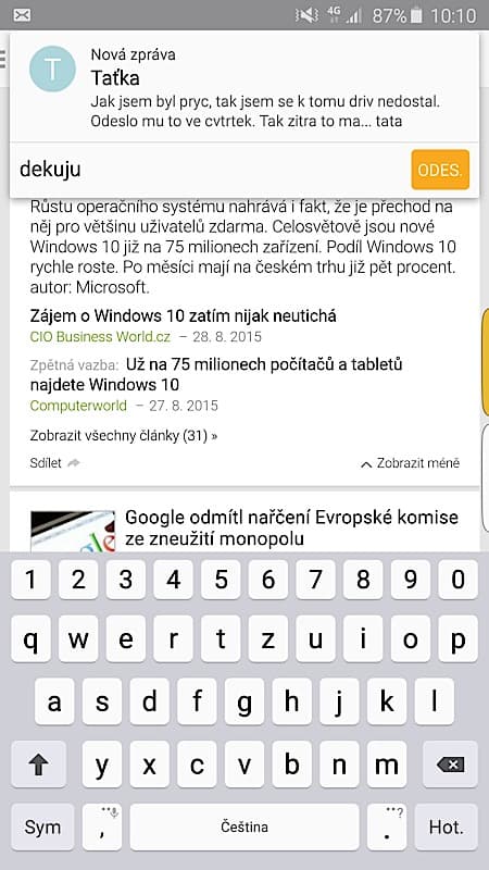 Displej a prostředí jsou tedy na výbornou. A stejně dobře si vedla také baterie. Její kapacita narostla z 2600 mAh na rovnou 3000 mAh a samotné výsledky pak mluví za vše. S6 Edge Plus mi při běžném pracovním dni vydržel od rána až do večera s naprostým přehledem. Pokud jsem měl volnější dny, nebyl problém se dostat ani na dva dny provozu, i když už jsem se ke konci druhého dne trochu obával, aby telefon ještě pár hodin navečer vydržel.