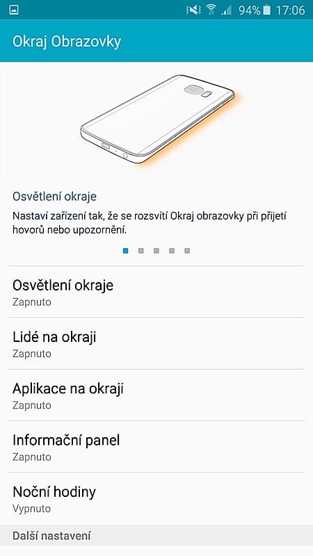 „Boční“ displej má ale ještě pár dalších vychytávek. Například pokud telefon položíte displejem směrem dolů, bude vás krásně barevně postranní proužek upozorňovat na nové zprávy a příchozí hovory od vašich oblíbených kontaktů, které máte v „edge“ displeji zahrnuté. Jenže k čemu to vlastně je, když už rovnou můžete mít telefon displejem obrácený normálně nahorů a jednak vidět kdo vám volá a navíc si třeba i rovnou přečíst danou zprávu, aniž byste se museli telefonu jakkoliv dotýkat? Opět je to takové drbání levou rukou za pravým uchem.