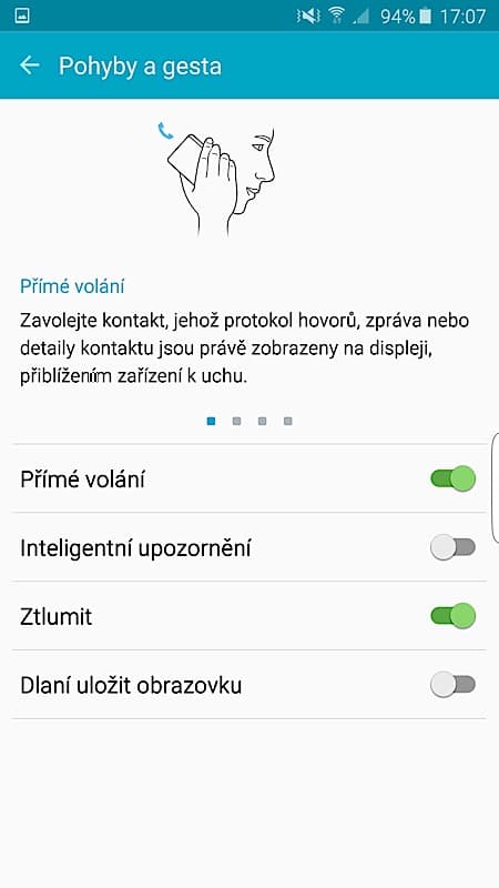 Chytrá jsou také již časem prověřená gesta a pohybové funkce – přímé volání (zvedněte telefon k uchu pro přijmutí nebo pro vytočení daného kontaktu), ztlumit (otočením ztišíte zvuky, ať už vyzvánění nebo budíku) či inteligentní upozornění (po zvednutí telefon zavibruje, pokud máte novou notifikaci). A chytrá je i možnost odmítnutí příchozího hovoru delším přidržením prstu na senzoru tepu (na zádech telefonu), která zároveň na číslo volaného automaticky odešle vámi přednastavenou zprávu, proč jste hovor nemohli přijmout. Šikovné.