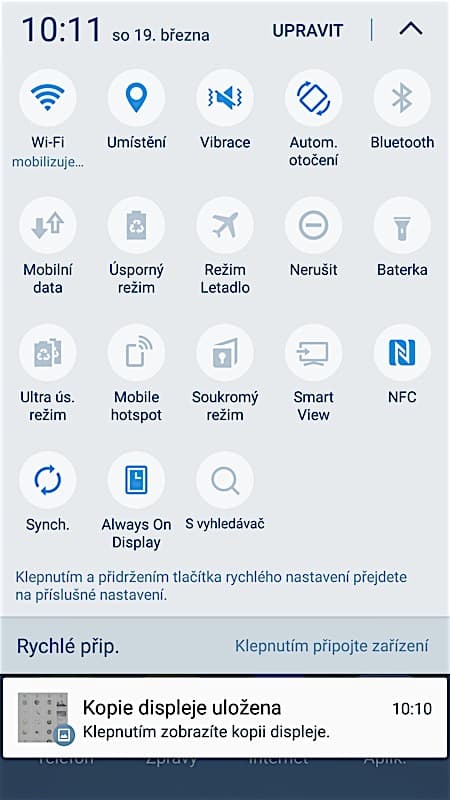 Ostatně: podrobnosti k notifikacím si můžete na okraji displeje nechat zobrazit, i když je obrazovka vypnutá. Stačí jen pohladit zaoblenou část krycího skla a rázem se objeví nejen podrobně rozepsané notifikace, ale volitelně i trendy z Twitteru, nebo i stručné zprávy z vybraných internetových portálů. V noci pak může okraj displeje zobrazovat hodiny, přes den pak posloužit k rychlé notifikaci hovorů. Pokud totiž telefon položíte displejem dolů, může se viditelná část okraje během zvonění rozsvěcet různými barvami. Samsung zkrátka udělal zřejmě maximum pro co nejmodulárnější využití displeje „edge“. Osobně se však přiznám, že jsem ničemu z toho nepřišel na chuť – možná je však chyba v mém konzervativním přístupu.