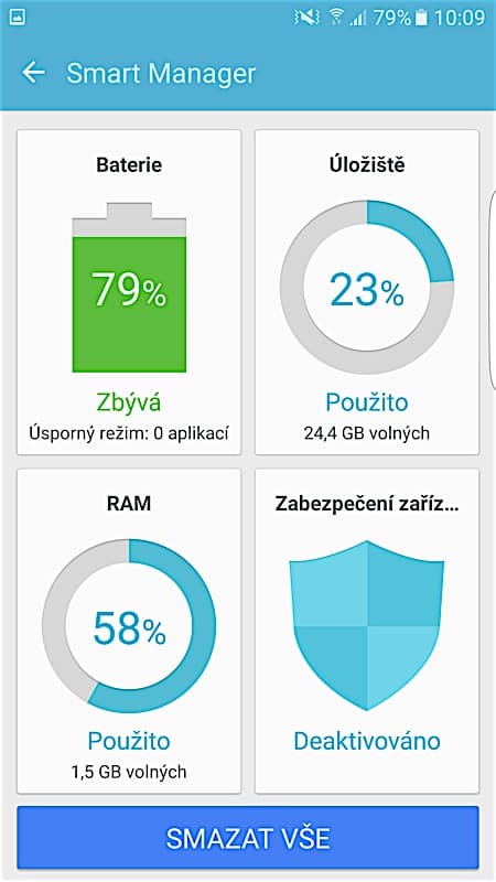 Prostředí telefonu zkrátka umí bohatě dimenzovaný hardware telefonu využít „na plné pecky“. Ani když otevřete naráz dvě aplikace, nic se nezpomaluje ani nedrhne. A není divu. 4 GB RAM ve spolupráci s nejnovějším čipem Exynos poskytují skutečný nadbytek výkonu. Na český trh se pak Galaxy S7 dodává pouze ve verzi s 32 GB vnitřní paměti, z níž je uživateli přístupno přibližně 24 GB. Není však třeba zoufat, úložiště snadno rozšíříte už zmiňovanými microSD kartami až do velikosti 200 GB.