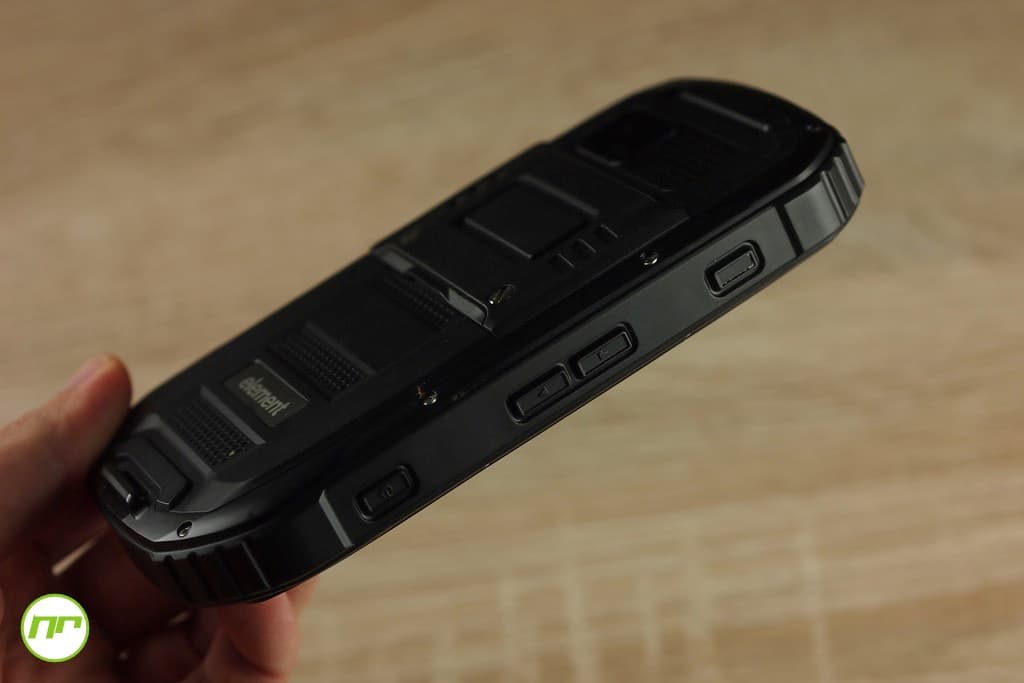Mnohem raději tak budete Element probouzet mechanickým tlačítkem Domů, který obklopují podsvícené klávesy pro menu a zpět. Vzhledem k tomu, že na spodku telefonu sídlí jen poutko pro řemínek (dostatečně široké, aby se jím protáhl i popruh od batohu) a na vršku nic zajímavého nebydlí, musela pro často používané konektory posloužit strana pravá.