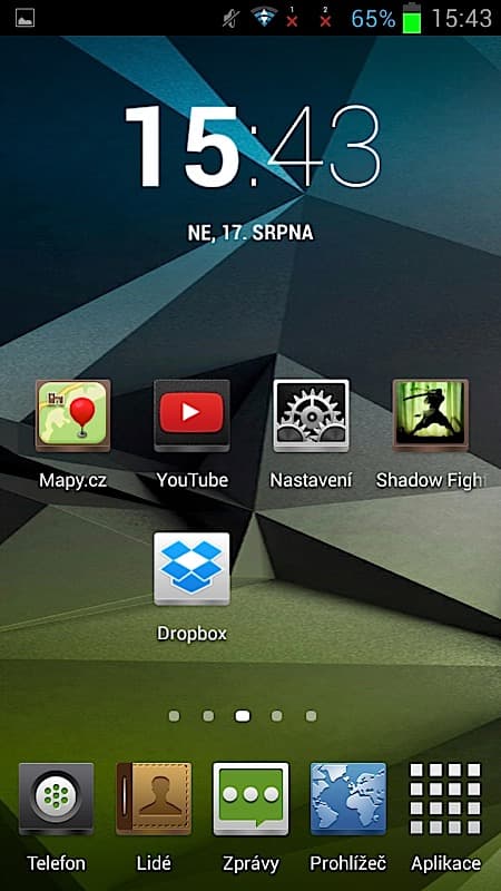 Prostředí dává na hraní k dispozici pět pracovních ploch se čtyřmi sloupci ikon a dokovací lištou, kam se vejde zástupců hned pět. Nic navíc už nečekejte, tři efekty rozhodně úžas nevzbudí a na rychlé přepínače v samostatné stahovací roletce jsme si u Androidu 4.2.2 už také dávno zvykli. Klasická je i stabilita. Nejpoužívanější aplikace fungují, ale takový kompas mi pravidelně padal chvíli poté, co se dosti neochotně snažil zamířit střelku k severu. Pod slovem neochotně si představte, že mu stačilo ukázat kamkoli mezi východ a západ na správné polovině kruhu.