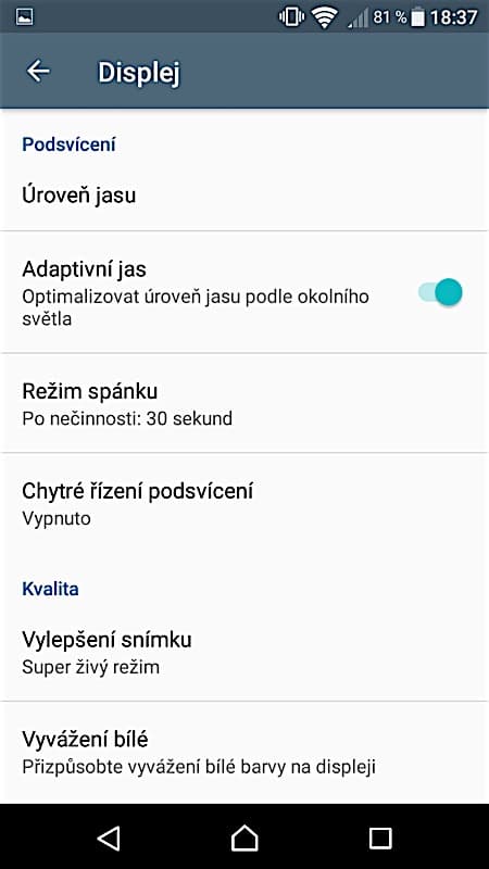 Tabulkově na tom není Xperia XA moc dobře. Její 5″ HD displej s jemností necelých 300 ppi jednoznačně zaostává ve své třídě za konkurencí, ovšem rozdíl v praxi zas tak postřehnutelný není. Ano, obraz je při bližším prozkoumání o trochu méně ostrý, jinak ale barvy obrazovky jsou věrné a dostatečně syté, stejně tak i čitelností na slunci můžeme celkem pochválit. Snad jen, aby displej nevypaloval sítnici pokud jej sledujete v noci, ani nejnižší úroveň podsvícení totiž není dostatečně nízká. Naopak chytrá je pak možnost nechat si displej automaticky zapnutý, dokud telefon držíte v ruce.