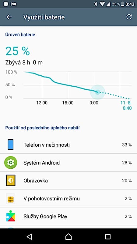 O poznání užitečnější tweak se týká baterie. Telefon se postupně naučí, kdy nejčastěji putuje na nabíječku, a podle toho řídí start i rychlost nabíjení. Cílem je, aby uživatel našel svůj telefon vždy nabitý před odpojením, ale aby se na druhé straně přebíjením neničila baterie. Ta by tak podle plánů Sony měla zachovat déle svoji původní kapacitu. Ta na papíře činí na danou třídu průměrných 3230 mAh, což bohatě vydrží i na celý náročný pracovní den – konkrétně na nějakých 23 hodin provozu se třemi hodinami zapnutého displeje. Možná by to mohlo být i více, kdyby na sebe Xperia uměla prozradit, kdy využívá plného 4K rozlišení displeje, a kdy jej uměle snižuje na Full HD. To se však nikdy říci nedá a o tom, kdy se tak stane, nemůže uživatel rozhodnout.