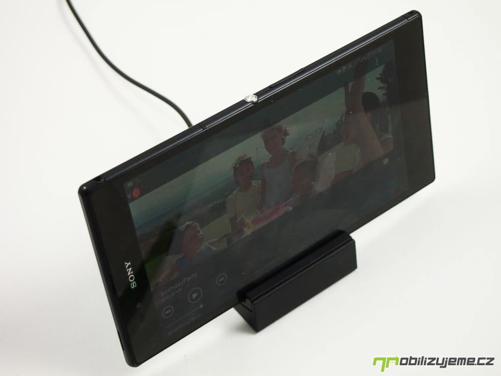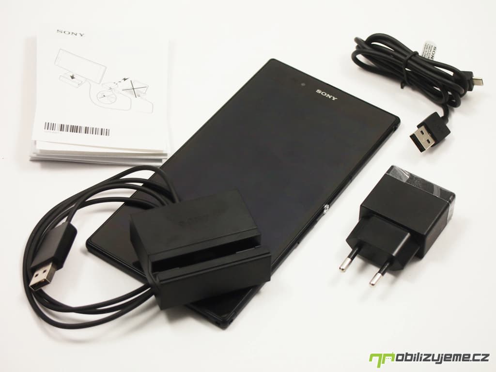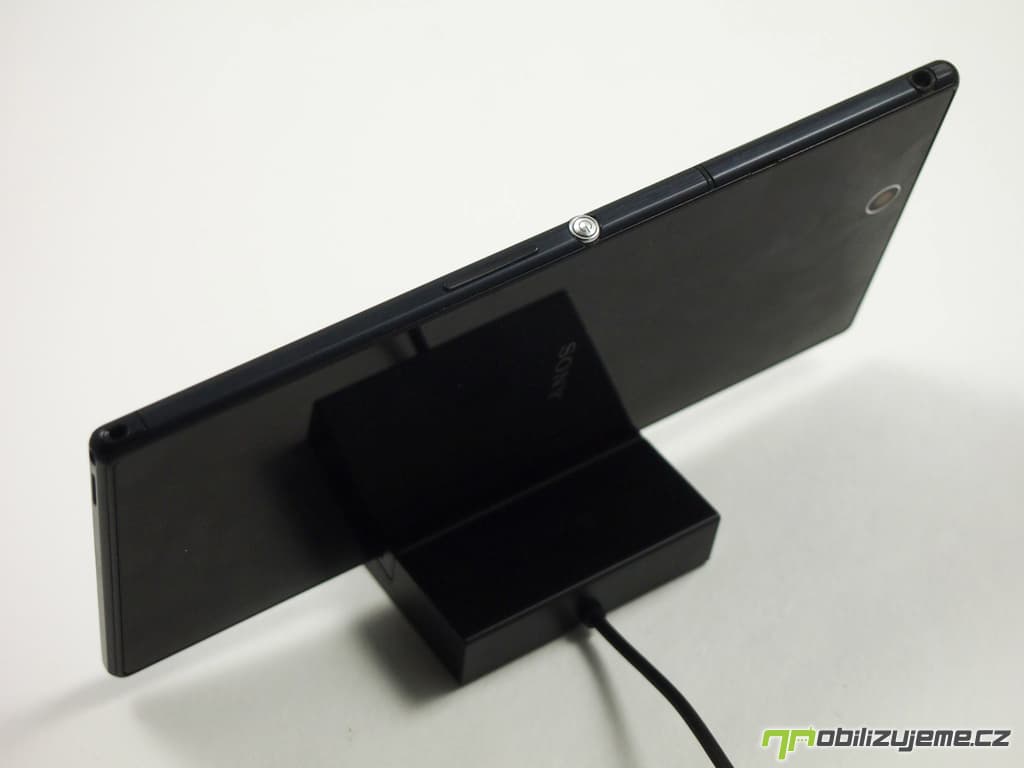 V krabičce najdeme kromě návodu, adaptéru k nabíječce, který spolu s datovým USB kabelem vytvoří klasickou nabíječku, a špuntových sluchátek s výměnnými špunty, také malou dokovací stanici. Obsahuje magnetický konektor s dvojicí pinů, které na Xperii Z Ultra najdeme na levém boku, a díky tomu je telefon snáze přichycen do potřebné pozice ve stojánku. USB kabel ze stanice pak můžeme připojit k nabíječce pro pohodlnější dobíjení telefonu bez nutnosti odkrývat těsnící krytku na microUSB portu. Je to jednoduché a elegantní řešení. Škoda jen, že nelze stanici využít pro připojení k PC, abychom si synchronizovali obsah a také telefon dobíjeli, ani jedno v tomto spojení totiž neumí.