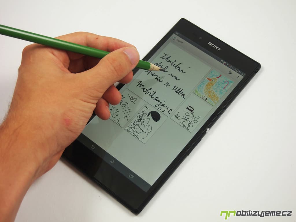 A výhody má displej Xperie Z Ultra ještě další. Jako první kapacitní displej funguje s jakoukoliv běžnou tužkou, není třeba speciálního stylusu. Z praktického hlediska tím ovšem displej trpí, nikoliv tedy tak, že by se displej ničil, ale po funkční stránce není využití obyčejné tužky příliš použitelné. Displej má sice zvýšenou citlivost, aby reagoval i na tužku, ovšem nedokáže reagovat dostatečně rychle a přesně, takže pokud nakreslíte zakřivenou čáru nebo budete psát s tužkou stejně rychle jako na papír, displej bude vynechávat.