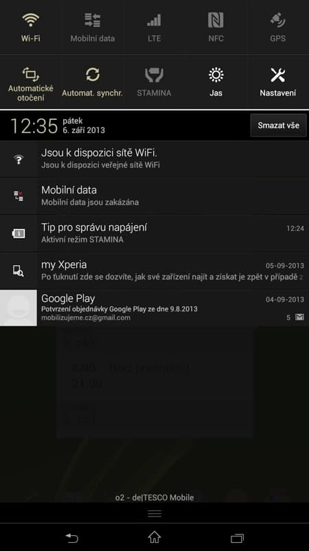 Ani miniaplikace však nezachrání výrobce před tím, že prachbídně využívá obří velikosti displeje. Prakticky v tomto směru Sony nepřináší nic navíc oproti Xperii Z, která tabletofonem není. A to není správný krok. Pokud zařízení překlopíte do režimu na šířku a půjdete do nastavení, 75 % plochy displeje je prázdné. Přitom by stačilo nabídnout zobrazení jako mají tablety a lépe tak místo využít, a nejen v nastavení systému, ale i ve zprávách, v emailech apod. Android to umí, výrobce se může „vymlouvat“ jen na sám na sebe.