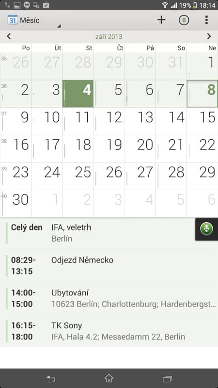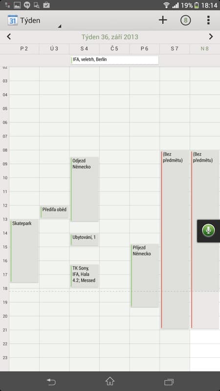 Kalendář se stále nezměnil a Sony tak nemůžu pochválit za nepřehledné zobrazení v měsíčním náhledu, kde je vidět na jednotlivých dnech jen černý proužek, že v daném dnu něco mám, ale už nevím, jestli je to práce, osobní či něco jiného (přitom by stačilo proužky událostí jen barevně odlišit), v týdenním náhledu to přitom najednou možné je. Manažerům naštěstí pomůže obchod Google Play a stažení některého z pokročilejších kalendářů.