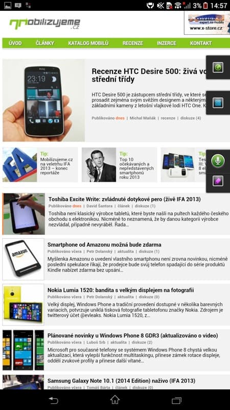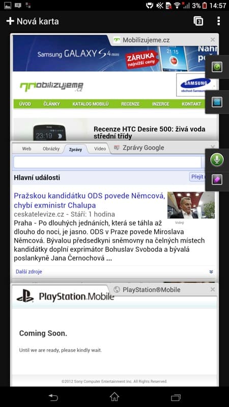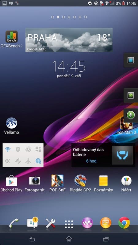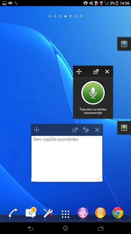 Používání organizačních funkcí nabírá u velké Xperie Z Ultra nový směr. Díky miniaplikacím si můžete třeba takový diktafon, poznámky, kalendář, kalkulačku, ale i další funkce připevnit rovnou na pravý kraj obrazovky a mít je neustále po ruce. Přijde mi to jako dobré řešení a alespoň částečné vyřešení obrovského množství prostoru na 6,4“ displeji.