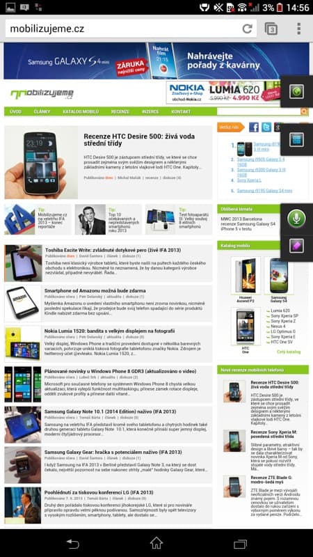 A máme tady nového krále! Nová Xperia Z Ultra pokořila sesterskou Xperii SP, která doposud opanovala první příčku. A navíc si udělala slušný náskok v podobě zhruba 500 bodů. Rozdíly na dalších předních příčkách již nejsou tak velké. Majitelé Xperie Z Ultra si mohou být docela dost dobře jisti, že jejich telefon je a ještě nějakou dobu bude více než dostatečným zařízením pro surfování na internetu. Praktická část potvrzuje, že webový prohlížeč je velmi rychlý, svižný, plynulý a je radost s ním pracovat.
