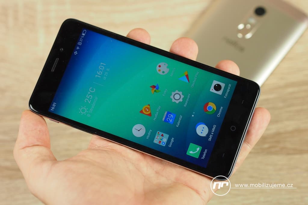 Sledování moderních trendů tak začíná až na čelní straně. Kryje ji Gorilla Glass 4 ve své 2,5D podobě se zaoblenými hranami, což zejména v bílé variantě působí velmi efektně. Toto barevné provedení s sebou ovšem nese také jednu zradu. Na první pohled disponuje dle diktátu doby extrémně tenkými rámečky kolem displeje. Zdání ovšem klame. To, co se jeví jako obrazovka, je ve skutečnosti ještě jeden, cca milimetr tenký rámeček černé barvy a teprve za ním začíná skutečný displej. S progresivitou konstrukce to tedy v Číně ještě zdaleka není tak daleko, jak by se mohlo zdát.
