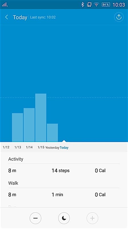 V dalších ohledech ale můžete na smartphone klidně zapomenout. Náramek měří kroky i bez něj a pouze v určitých časových intervalech pak dochází k synchronizaci dat do spárovaného zařízení (i když v prvních dnech občas synchronizace nefungovala a pomohl restart zařízení, update aplikace zřejmě situaci napravil). To samé platí také při monitorování vašeho spánku. Mobil klidně nechte ve vedlejší místnosti, jen si na něm nastavte budík a o vše další už se postará samotný náramek. Díky monitorování srdečního tepu pak dokáže náramek přesněji změřit kvalitu vašeho spánku.