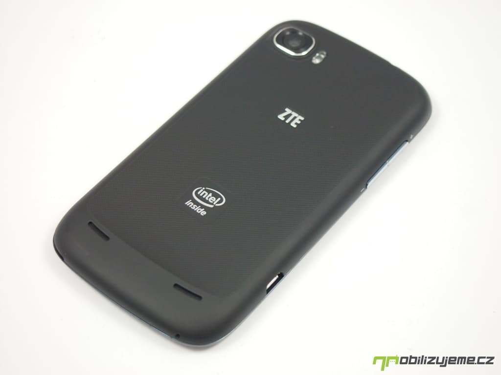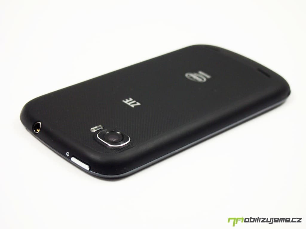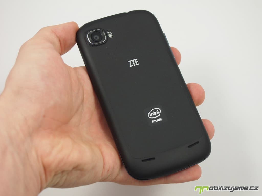 Ten je na první pohled i pocit vroubkovaný. Zde tento krok musím jednoznačně pochválit, protože tento design zabraňuje účinně proklouzávání a také usazování otisků prstů. Díky tomu se telefon velmi příjemně drží. Vroubky nejsou nijak nepříjemné, právě naopak. V dolní části uvidíte dvě dírky, které jsou zde kvůli reproduktoru. Nad nimi se uprostřed vyjímá znak Intelu. Přesouváme se do horní části, kde najdete ještě nápis výrobce, tedy ZTE a v levém horním růžku už pak umístěný jen fotoaparát. Ten má, jak jsem již napověděl v úvodu, 8 Mpx a kromě nahrávání Full HD videa nabídne ještě LED diodu a autofocus.