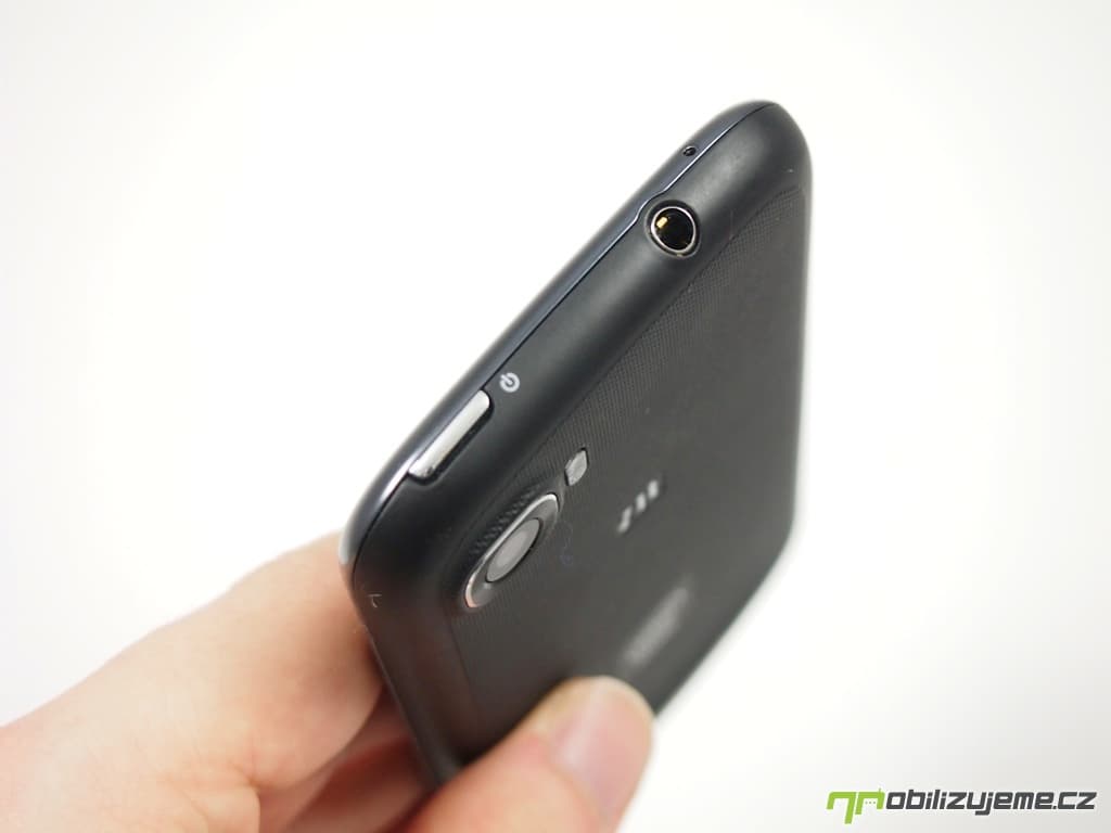 Zbývá nám ještě horní boční strana, na které najdeme zdířku pro připojení sluchátek. Jedná se o již klasický 3,5 mm konektor Jack. V pravé části ZTE Grand X In je pak ještě tlačítko pro zapínání a rozsvěcování displeje. I to je krásně pochromované a doslova blýskající se, avšak i to se viklá. Z bočních stran je to vše, takže se můžeme podívat na poslední část, která nám z designu schází, a to zadní kryt.
