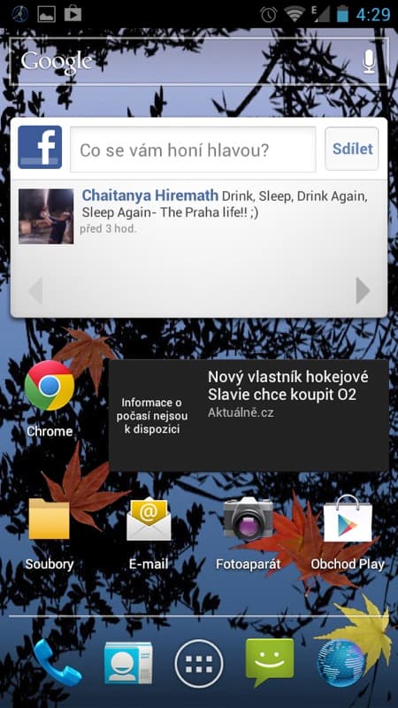 Sociální sítě jsou zastoupeny aplikacemi pro Facebook, Twitter a Google+. Využít se určitě dají také aplikace Pokec a Talk. Osobně jsem raději místo FB klienta používal Facebook prostřednictvím Google Chrome. Přišel mi přehlednější. Kdo nechce využít ani jednu možnost, může si během chvíle stáhnout Messengera a používat jeho.