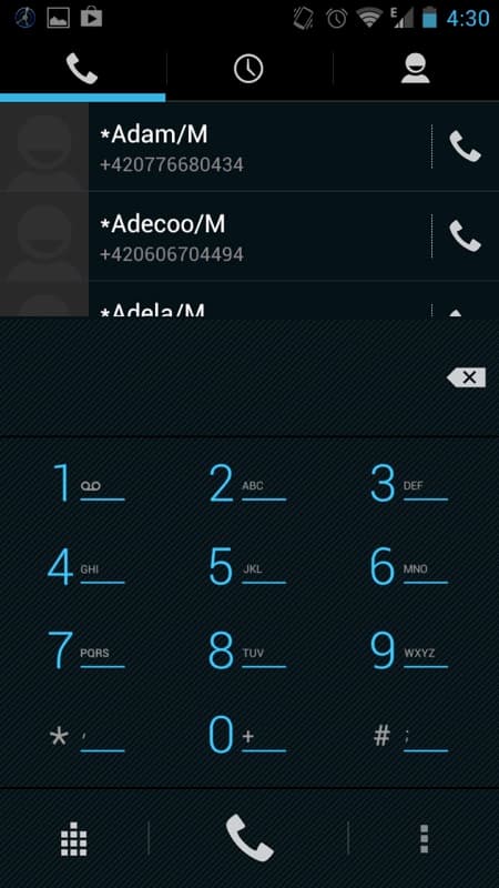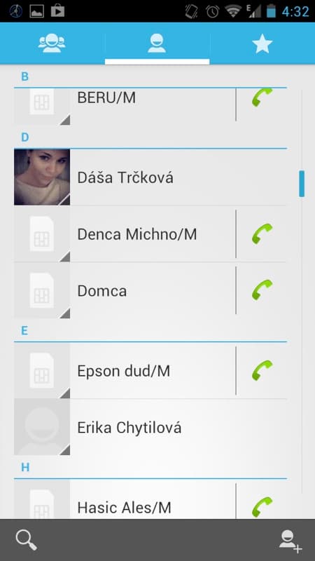 Do telefonního seznamu se dostanete z hlavního menu, nebo pomocí ikonky na pracovní ploše. Seznam je přehledný, nechybí zde možnost dávat kontakty do skupin, vytvářet nové, nebo si některé označit za oblíbené. Provázanost s Google účtem je pochopitelně k dispozici. Při hledání kontaktu telefon reaguje okamžitě, a to jak při napsání písmena, tak číslice. Ihned vám tedy zobrazuje možné výsledky.