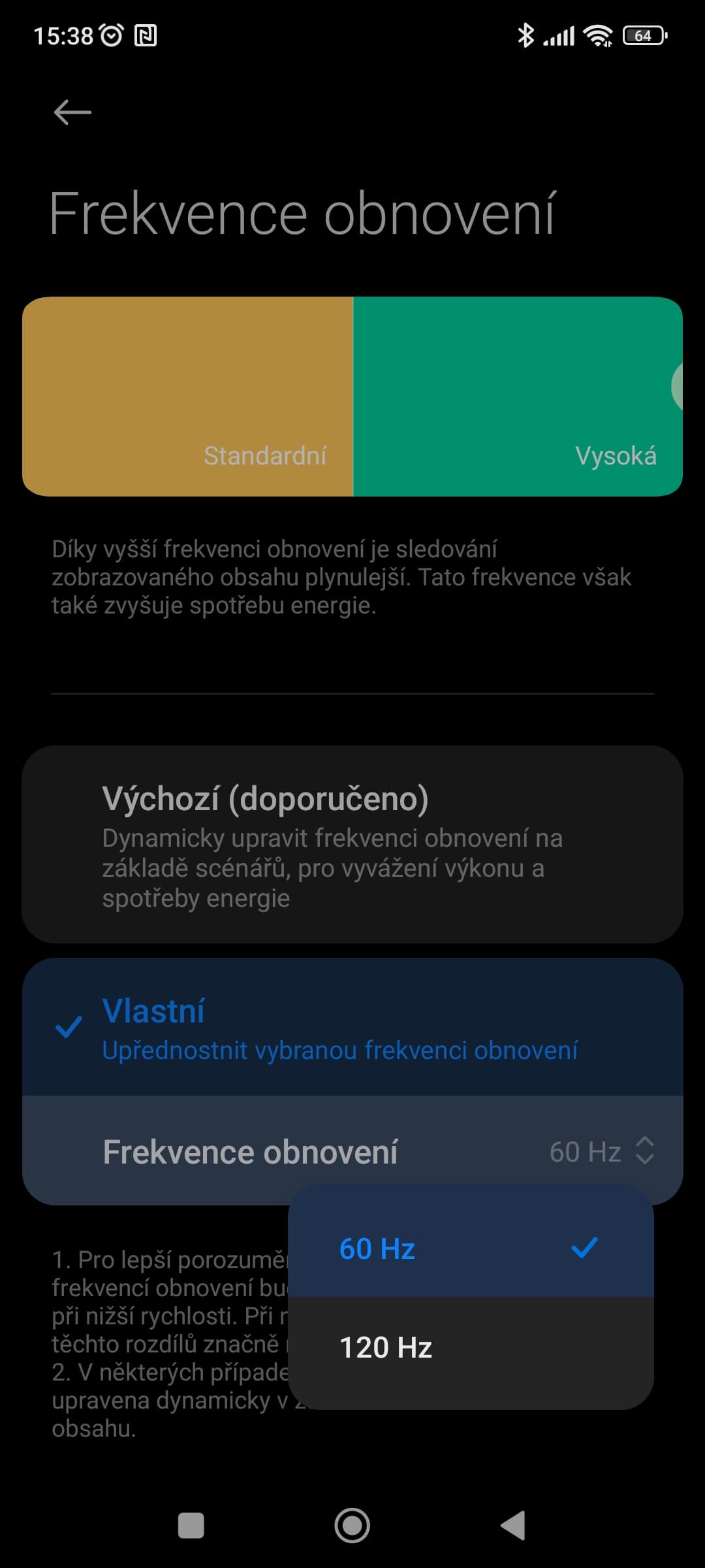 Maximální jas se může vyšplhat až na hodnotu 900 nitů, díky čemuž je čitelnost perfektní i na přímém slunci a v tomto ohledu opravdu není důvod ke stížnostem. Za zmínku pak stojí 10-bitové barvy, podpora HDR10+ a certifikace Dolby Vision. Co se obnovovací frekvence týče, tak k dispozici je nastavení na pevnou hodnotu (60 či 120 Hz) nebo můžete tento prvek nechat na telefonu, aby ho přizpůsobil zobrazovanému obsahu. Při tomto nastavení upravuje telefon frekvenci v úrovních 30, 60, 90 a 120 Hz.