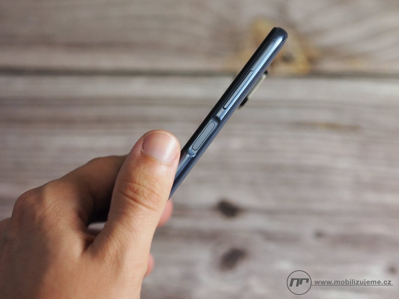 Po stranách přístroje najdeme také zajímavé věci. Nabíjecí konektor je USB-C (hurá!), nezapomnělo se ani na 3,5mm audiojack (podruhé hurá!) a slot na levém boku nabízí místo pro dvě nanoSIM karty i MicroSD; zapomenou nesmíme ani na infraport. Napravo je čtečka otisků, která v jednoduchosti mohla být lepší – chybí ji svižnost. Xiaomi kdysi masově rozšířilo čtečky na zádech, ty na boku ale zatím nejsou její silná stránka.