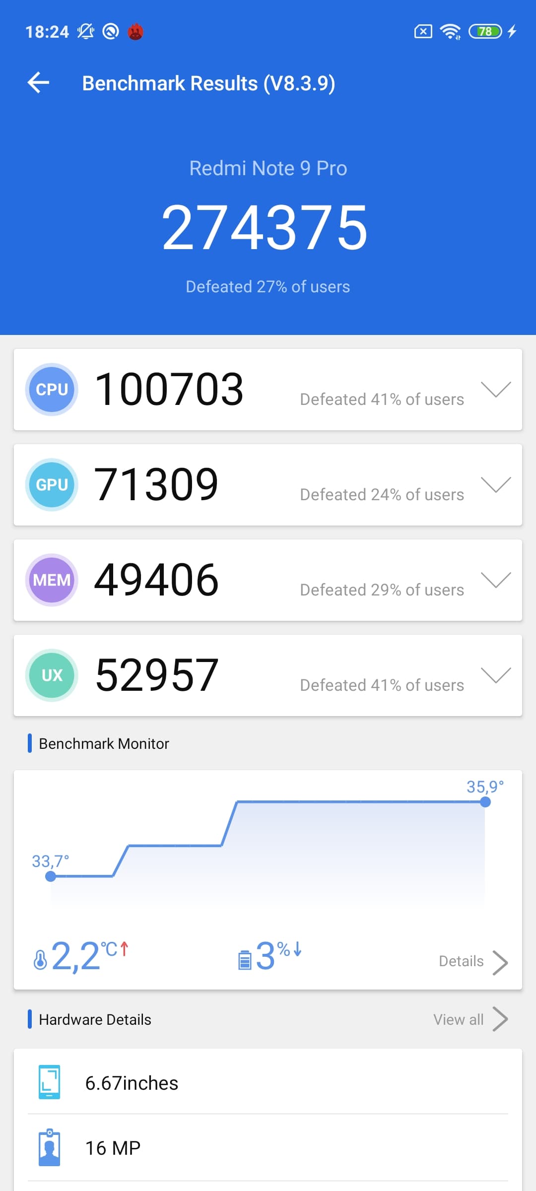 Všechno totiž šlape úplně výborně, zadrhávání je minimální a telefon není problém v pohodě používat i při několika otevřených aplikacích. Za plynulost systému vděčíme nejen optimalizaci, ale i 6 GB operační paměti. Pro dokreslení: v benchmarku AnTuTu si Redmi Note 9 Pro vystřílel sympatických 274 tisíc bodů.