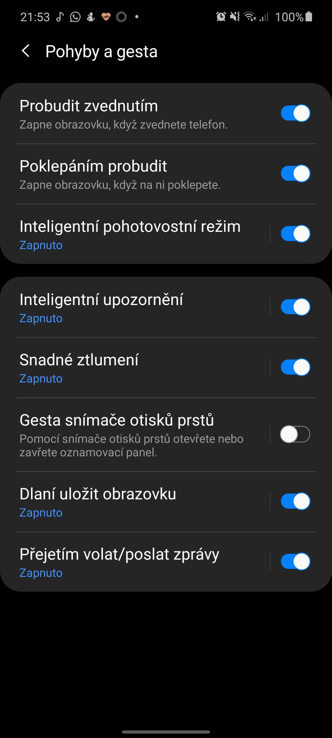 Šikovná je celá paleta přidaných funkcí, tak zmíním ty, které mě nějak zaujaly. Jednak propracovaný Always On Display s volitelnými widgety s počasím a ovládáním hudby, dál pak upozornění na zmeškané události při zvednutí telefonu, zmenšení obsahu ke kraji a inteligentní pohotovostní režim, kdy telefon sleduje kamerou pohyb obličeje a zabrání zhasnutí obrazovky při čtení.