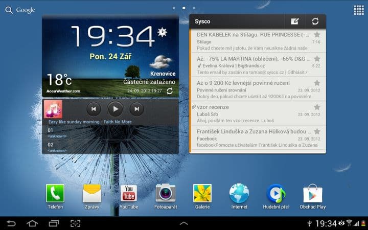 Jako operační systém zvolil výrobce Android ve verzi 4.0 Ice Cream Sandwich. Samsung se konečně poučil a dokázal odladit své prostředí TouchWiz tak, jak od tabletu této cenové kategorie čekáme. Vše je plynulé a rychlé, žádné záseky a padání systému zde nečekejte.