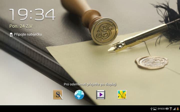 Zamykací obrazovka nabízí stejný efekt vodní hladiny, jako známe ze Samsungu Galaxy S III. Dále zde najdeme čtveřici ikon, které si sami zvolíme a chybět nemůže informace o času a datu. Přidat si sem můžete ještě počasí a zpravodajství ze světa. Tablet také podporuje odemykání pomocí obličeje.