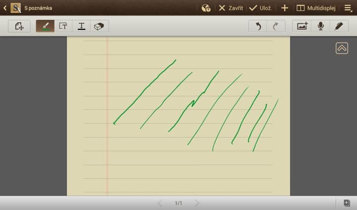 Na rozdíl od kapacitních stylusů, můžete mít na displeji položenou ruku s S-Penem a tablet snímá pouze stylus, což umožňuje bezproblémové psaní. Využít také můžete rozpoznávání psaného textu, které funguje překvapivě velmi dobře. S-Pen také umí vyhodnotit tlak, který na displej vyvíjíte. To se hodí zejména pro kreslení nebo pokud chcete něco napsat tučně.