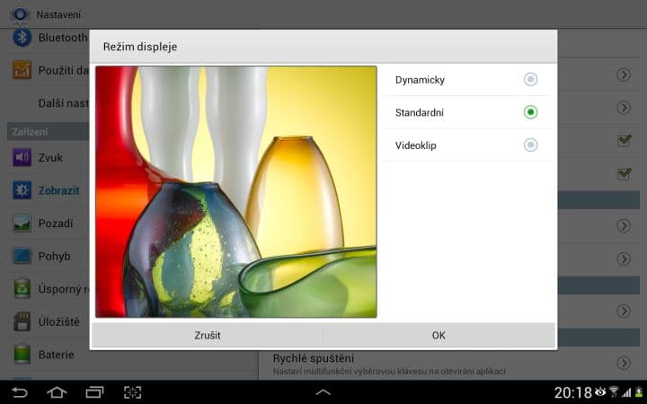 Displej je vyroben technologií PLS, což je vlastně vylepšené IPS od Samsungu. Nabídne výborné pozorovací úhly a kvalitní podání barev, které je možné si v nastavení změnit ve třech stupních: Dynamický, Standardní a Videoklip. Samozřejmostí je pak podpora multitouch (až 10 doteků) a automatické regulaci jasu, která reaguje rychle, ale na můj vkus volí až moc nízký jas. Proto jsem uvítal možnost manuální regulace jasu v notifikační liště.