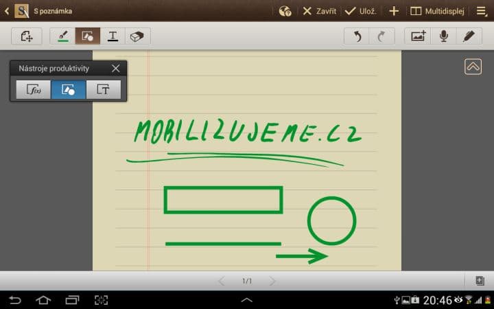 S poznámka – Jak už název napovídá, účelem této aplikace je zaznamenávání poznámek. Disponuje také speciálními funkcemi pro rozpoznávání geometrických obrazců, vzorců a psaného textu. Vše funguje velmi spolehlivě a rychle. Do poznámek si také můžete vkládat obrázky, a nebo nahrát vzkaz.
