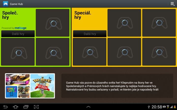 Chybět nemůže ani komunikační aplikace ChatOn od Samsungu. Dále zde najdeme Game Hub (doporučené hry), Music Hub (obchod s hudbou) a Video Hub (obchod s filmy, bohužel v ČR nedostupný).
