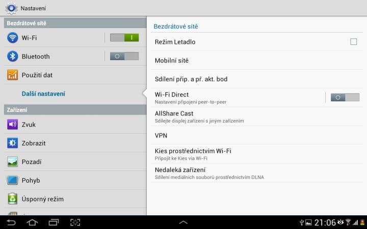 Naše verze Samsungu Galaxy Note 10.1 disponuje Wi-Fi 802.11 a/b/g/n, 3G HSPA+ s rychlostí až 21 Mb za sekundu, Bluetooth 4.0 s podporou A2DP a technologií Wi-Fi Direct pro přenos dat. Pokud jste se teď trochu ztratili, tak věřte, že s Galaxy Notem 10.1 se připojíte všude. S příjmem Wi-Fi signálu jsem neměl žádný problém a stabilita byla také na vysoké úrovni. To samé platí s 3G signálem.