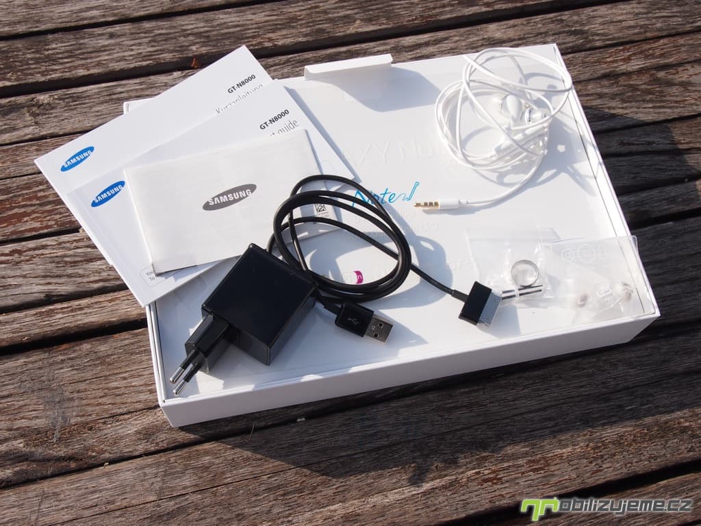 Galaxy Note 10.1 je dodáván v bílé obdélníkové krabici, která odpovídá velikostem tabletu. Uvnitř se nachází samotný tablet, nabíječka, USB kabel, který je zakončen 30-ti pinovým konektorem, sluchátka s vyměnitelnými špunty a náhradní hroty pro stylus S-Pen. To vše je doplněno nezbytnými manuály.