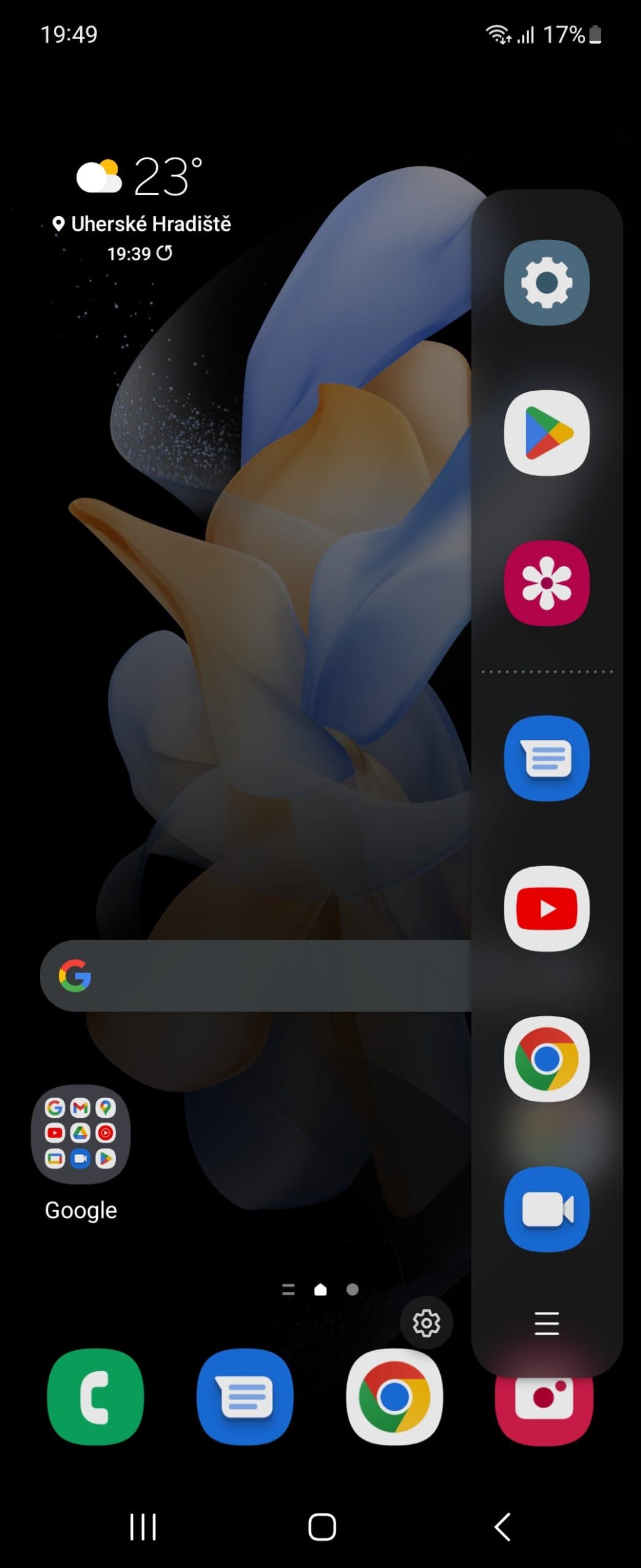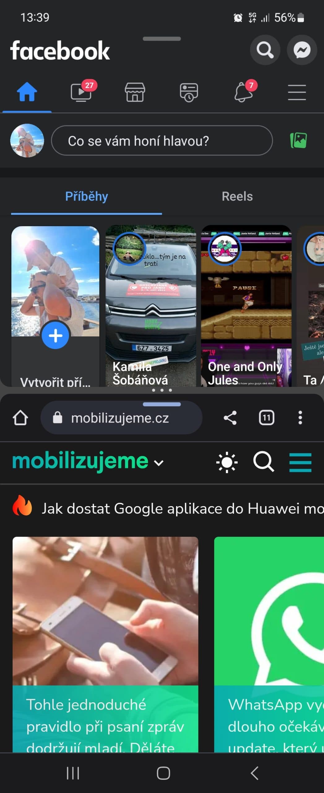 Některé aplikace umožňují v tomto režimu zobrazení jiných prvků – třeba ve WhatsAppu (i jiných messengerech) lze ve spodní části zobrazit klávesnici, takže z telefonu si můžete vytvořit takový miniaturní notebook. Možností je tedy hodně a je vidět, Samsung neustále na využití tohoto typu konstrukce pracuje. A příjemné je i to, že klávesnice je při psaní na šířku přizpůsobena displeji s poměrem stran 22:9, takže je rozdělena na dvě poloviny, jenž jsou umístěny po stranách a uprostřed, kam se s palci ani moc nedostanete, je prázdné místo.