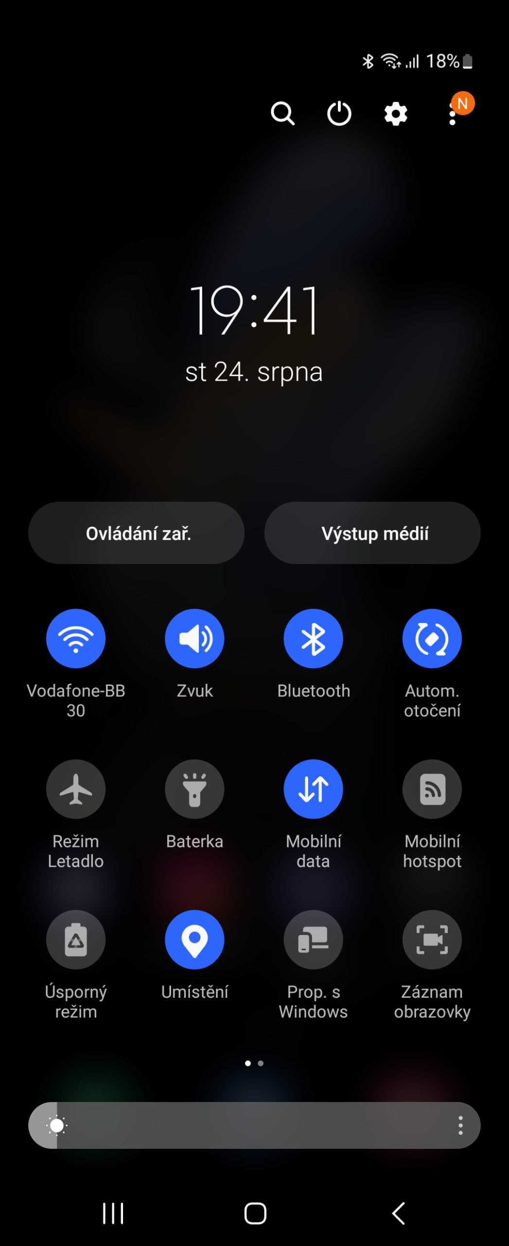 Když máte tuto funkci aktivní a složíte telefon ve svislém směru (tzn. že jeho horní část dáte do svislé polohy), tak aplikace, kterou používáte, se zobrazí v horní části displeje a v té spodní, toho času sloužící jako základna, se zobrazí panel s dalšími ovládacími prvky. Těch je pět, a sice tlačítko pro stažení horní lišty, tlačítko pro pořízení snímku obrazovky, regulátor jasu, nastavení hlasitosti a nejzajímavější prvek – touchpad. Po jeho aktivaci můžete spodní část displej používat jako touchpad a jeho prostřednictvím ovládat klasický kurzor v horní části obrazovky.