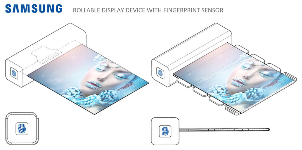 Jihokorejská společnost si nedávno nechala patentovat rolovací displej, který lze aktivovat pomocí otisků prstů. Na rozdíl od svinovacího displeje vyvíjeného společností LG, který používá velmi malý rotující motor, Samsung nabízí mnohem elegatnější řešení.
