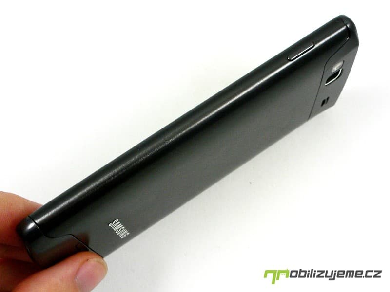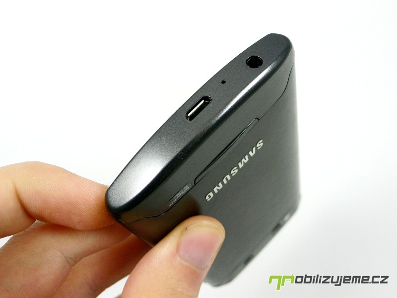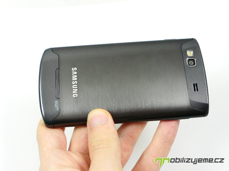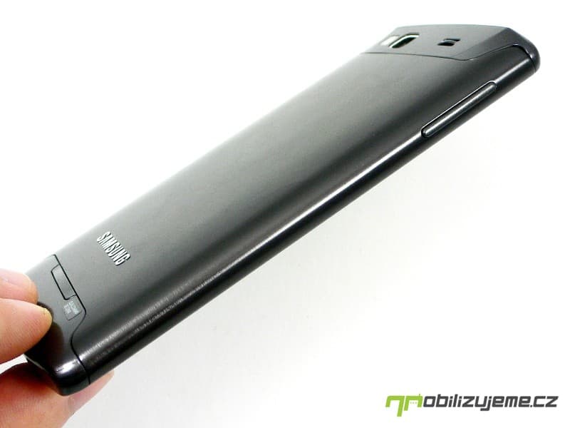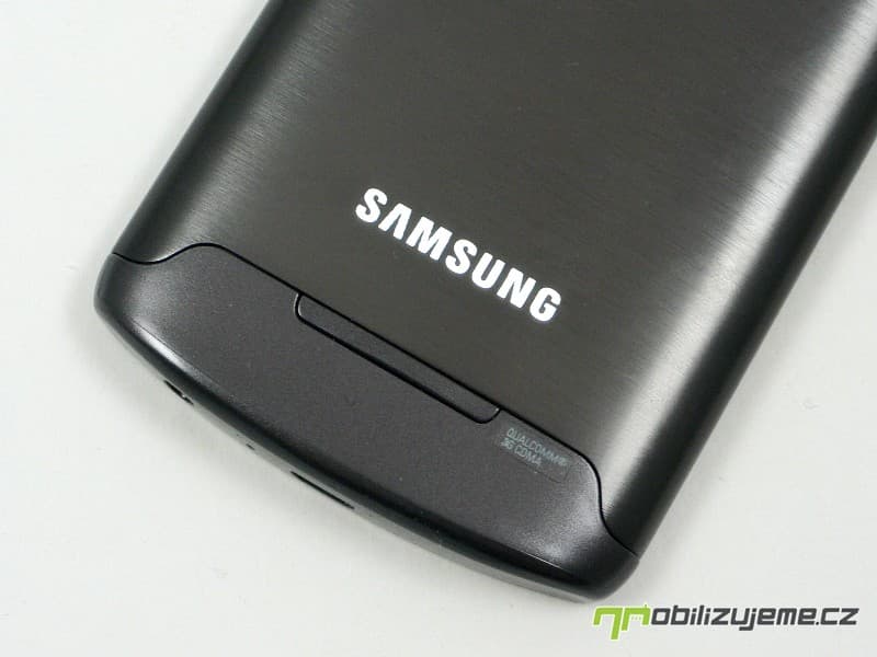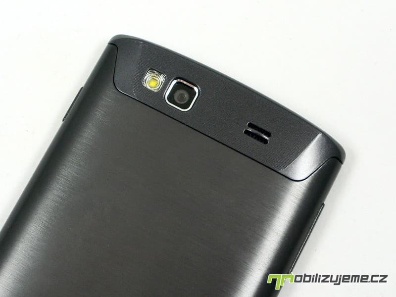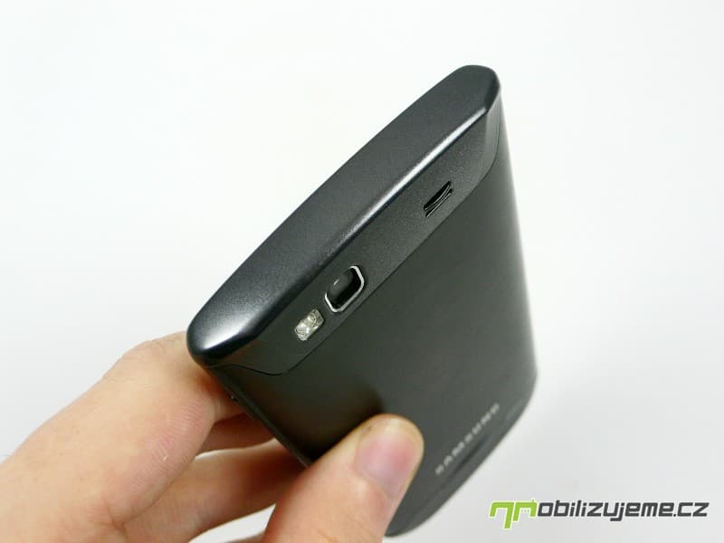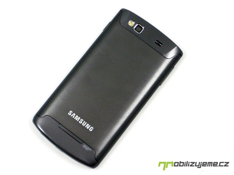 Když se podíváme na zadní stranu telefonu, horní a spodní část je odlišena od zbytku kovově taženého povrchu s nádechem hnědé barvy. Ve spodní části se nalézá tlačítko, jehož stiskem můžeme vysunout konstrukci. Horní část nese 5 Mpx fotoaparát, LED blesk a dvojitý prořez pro zabudovaný reproduktor. Celkově hodnotím konstrukční zpracování a rozmístění prvků na jedničku. Samsung dokázal vyrobit kvalitní, bytelný, a přitom tak plochý smartphone, který se dokáže zalíbit a ani se nemusí příliš snažit.