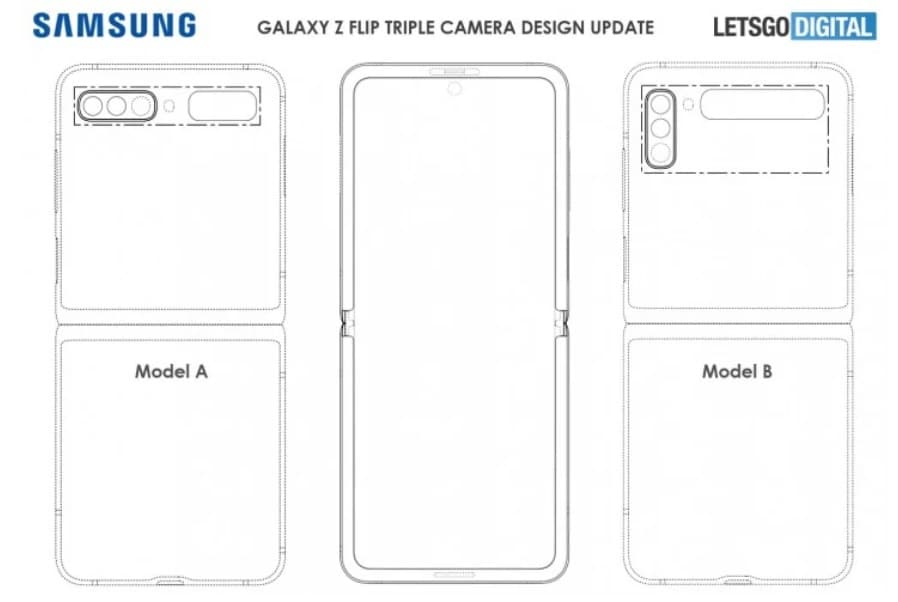 Podle aktuálního úniku by se nástupce – Galaxy Z Flip 2 – mohl těchto neduhů zbavit. Portál LetsGoDigital zveřejnil údajný patent druhé generace tohoto telefonu. Obrázek nám ukazuje dvě varianty řešení. Obě shodně nabízí tři objektivy. Rozdíl je ve velikosti displeje, kdy ukázka vpravo (Model B) jej má mnohem větší.
