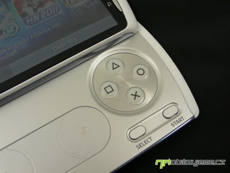 Uprostřed výsuvné části najdeme senzorové plošinky, které jsou tak spíše do počtu. Jen málokterá hra je zatím využívá, a když už, tak je pohodlnější používat klasická tlačítka. Výjimkou jsou jen bojové hry, ve kterých se potřebujete pohybovat nejen základními čtyřmi směry. Posledními tlačítky na výsuvném ovladači jsou: select, start a nabídka (stejně jako tlačítko nabídka pod displejem). Velmi důležité jsou pak dvě herní páčky umístěné na pravém boku telefonu (v zavřeném stavu). Po vysunutí spodní části a herním držení telefonu v obou rukách vychází akorát na oba ukazováčky.