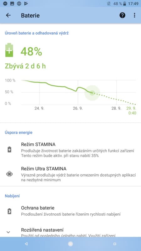 Pár praktických funkcí navíc ale telefon umí. Šikovné jsou třeba podmínkované profily Xperia Actions, které vám v noci zapnou tichý profil nebo spustí šetřič baterie během doby, kdy jste ve škole a soustředíte se na přednášky. Drobným bonusem je i režim pro ovládání v rukavicích. V zásadě se ale nejedná o nic, co by nezvládl Tasker nebo podobný automatizační program. Když byla řeč o šetření baterky, nesmím zapomenout na režim Stamina. Většinou ani není potřeba, přestože kapacita 3540 mAh nevypadá zázračně. Kdo ale někdy Sony vlastnil, ví, že si s takovou zásobou telefon vystačí dost dlouho. Pokud nemáte potřebu si svítit displejem po celý den, buďte v klidu, i víkend se s tímhle mobilem dá přežít bez nabíječky.