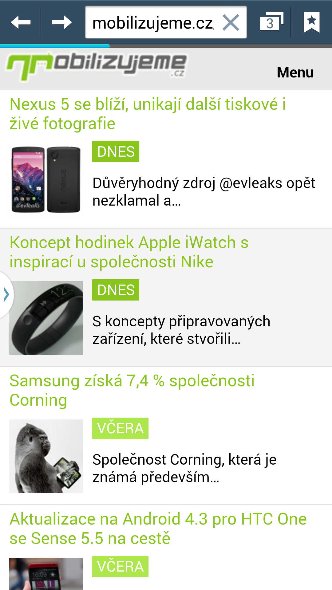 Mobilizujeme.cz na mobilu včera (první screen) a dnes (druhý – iOS, a třetí – Android)