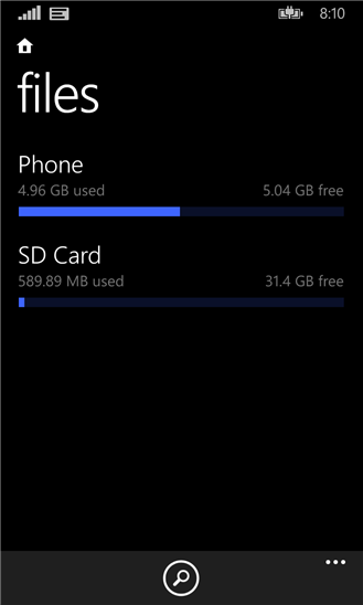 Správce souborů najdete na Windows Storu jako aplikaci „Files“ a může si ji zdarma stáhnout kdokoliv se smartphonem běžícím na nejnovějších Windows Phone 8.1. Funkce jsou přesně takové, jaké byste čekali – můžete veškeré soubory na vnitřní paměti a paměťové kartě spravovat (prohlížet, hledat, spouštět), organizovat do složek a kopírovat/přesouvat/přejmenovávat/mazat soubory.