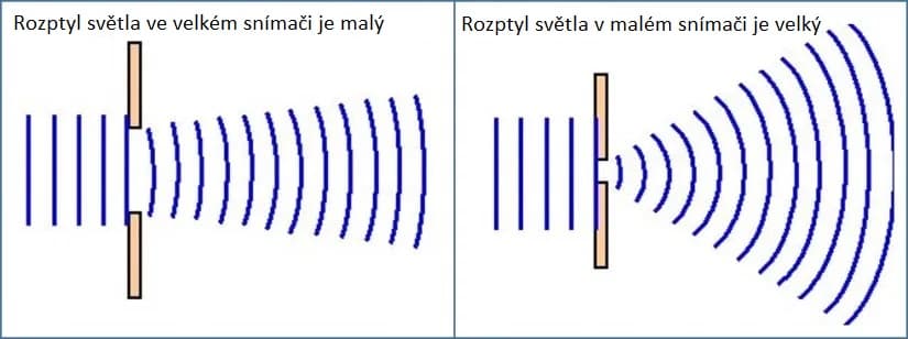 Platí, že tyto jevy jsou podstatné, pokud je velikost průchodu překážkou srovnatelná s vlnovou délkou. Kdyby byla větší, světlo projde nezměněné, naopak při menší by neprošlo vůbec. Jelikož vlnová délka viditelného světla je přibližně od 0,4 do 0,8 µm, dochází ve snímači k rozptylu vln (tzv. difrakci), což vede k dopadu vln na sousední pixely a snížení ostrosti obrazu