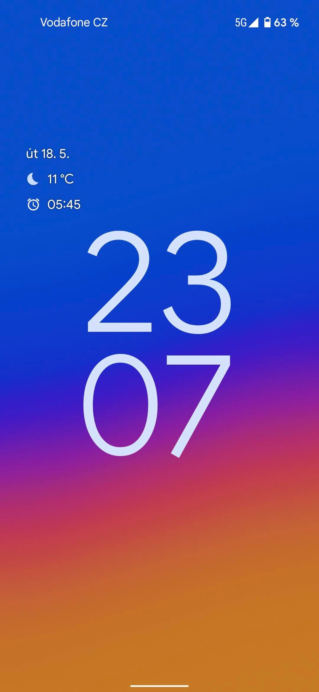 Ihned po představení jsem na redakční Pixel 5 (recenze) nainstaloval první veřejnou betu Androidu 12. Z promo videa mi bylo už předem jasné, že v letošním roce bude dost věcí jinak, a taky že ano. První velká změna se odehrává hned na zamykací obrazovce, kdy na vás vykouknou velké digitální hodiny à la Sony a nezbytné minimum informací (počasí, operátor, ikonky notifikací apod.).