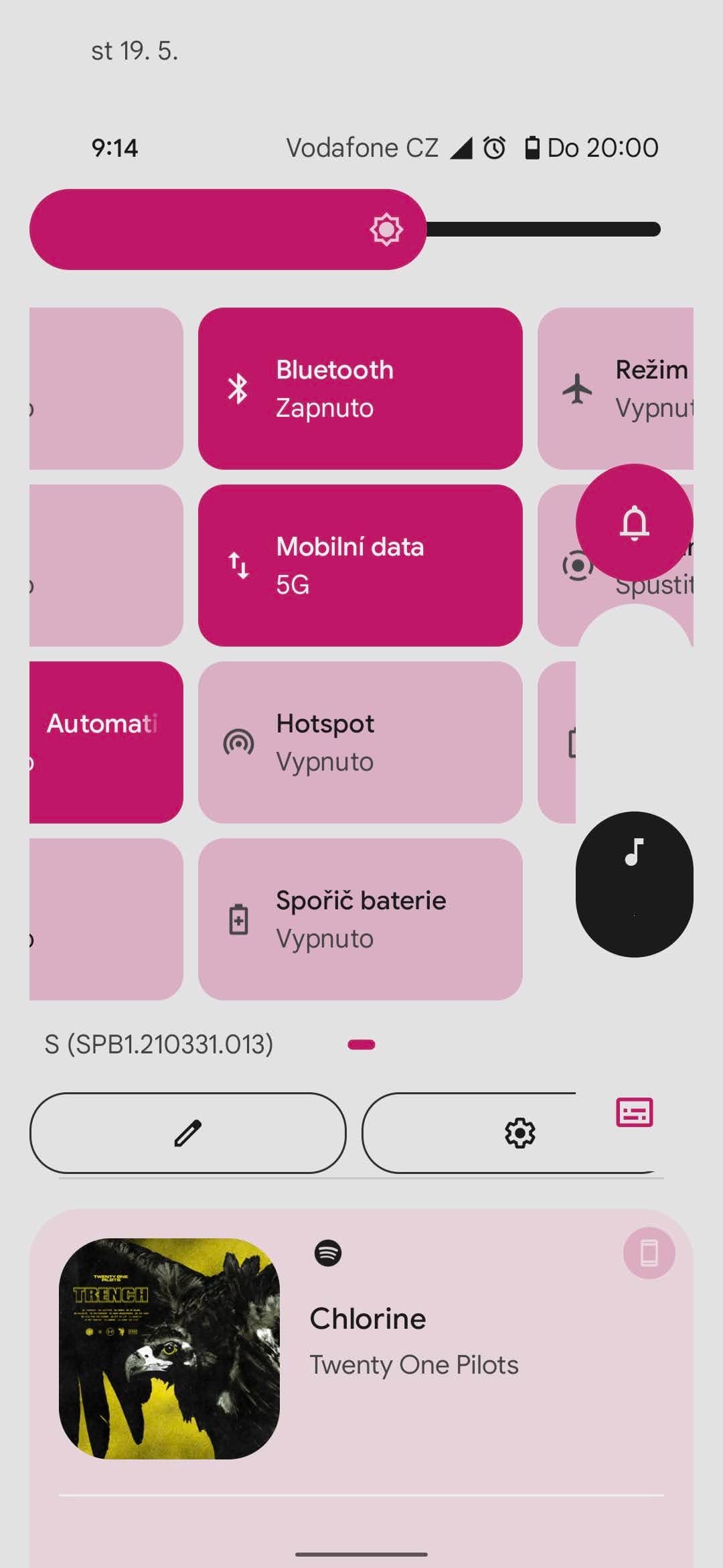 Při tažení směrem dolů se vám nově zobrazí pouze čtyři rychlé volby a hned pod nimi notifikace. Po dalším potáhnutí prstem se jich objeví osm spolu s možností jejich editace a zrychleným přístupem do Nastavení telefonu a samozřejmě nesmí chybět hudební widget. A abych nezapomněl, úplně nahoře najdete regulátor jasu, který je taky docela „monstr“ až si říkám, jestli to nešlo udělat jinak a možná lépe.