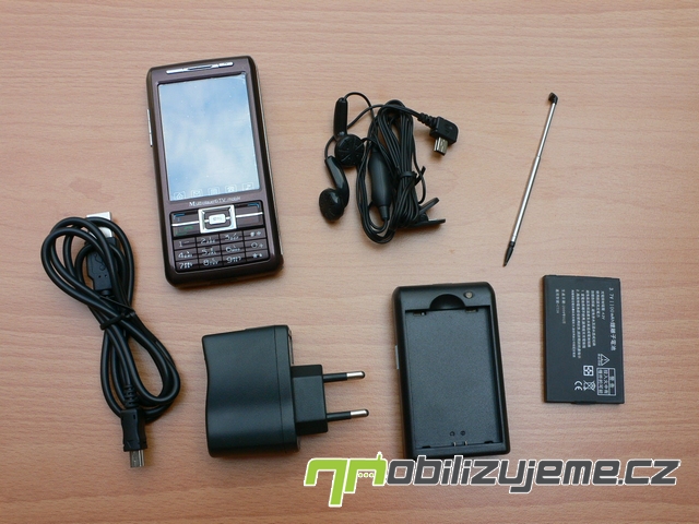 V malé krabici najdeme kromě samotného telefonu také 2x baterii, nabíječku, kolébku pro dobíjení náhradní baterie, stereo headset s peckovými sluchátky, datový USB kabel a 1x stylus. Postrádáme naopak paměťovou kartu.